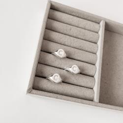 Descrição: Anel oval letra C cravejada regulável G fabricado(a) em prata