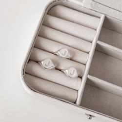 Descrição: Anel oval letra J cravejada regulável G fabricado(a) em prata