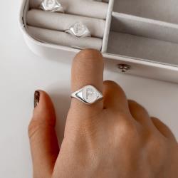 Descrição: Anel oval letra P cravejada regulável G fabricado(a) em prata