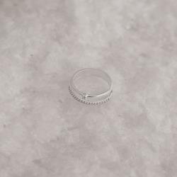 Descrição: Anel duplo solitário com meia aliança fabricado(a) em prata