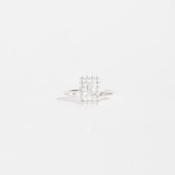 Descrição: Anel zircônia retangular cristal com cravejado fabricado(a) em prata