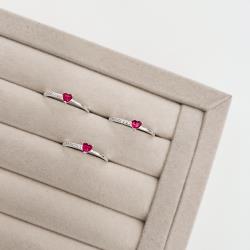 Anel zircônia coração rubi com cravejado lateral