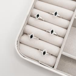 Descrição: Anel zircônia navete ônix com cravejado fabricado(a) em prata