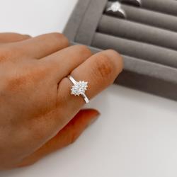 Descrição: Anel zircônia navete cristal com cravejado fabricado(a) em prata