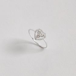 Descrição: Anel fino coração vazado com zircônias fabricado(a) em prata