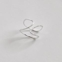 Anel aberto largo fio liso e cravejado | Mya Prata