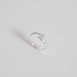 Descrição: Anel aberto borda cravejada fabricado(a) em prata