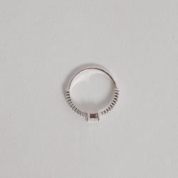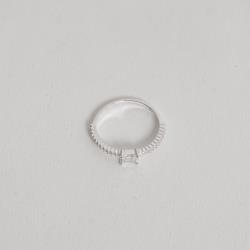 Descrição: Anel meia aliança com solitário zircônia retangular 4mm fabricado(a) em prata