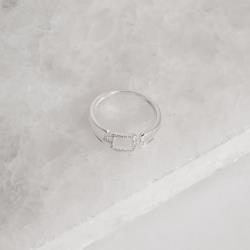 Anel quadrado vazado cravejado com elos | Mya Prata