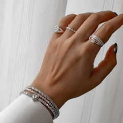 Anel 4 fios meia aliança, aparador e solitário 4mm | Mya Prata