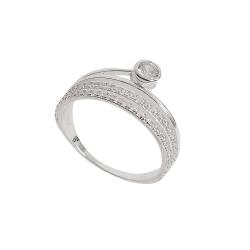 Descrição: Anel 4 fios meia aliança, aparador e solitário 4mm fabricado(a) em prata