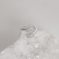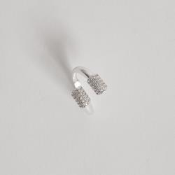 Descrição: Anel pontas cravejadas regulável P fabricado(a) em prata