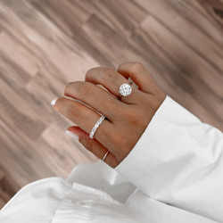 Descrição: Anel cravejado com zircônias retangular e oval fabricado(a) em prata