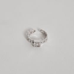 Descrição: Anel aberto corrente com zircônia quadrada fabricado(a) em prata