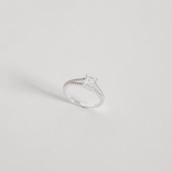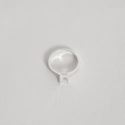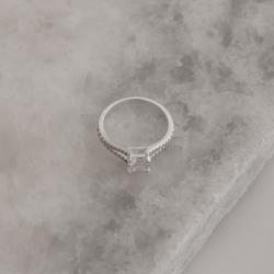 Descrição: Anel solitário zircônia quadrada 5mm com fio duplo cravejado fabricado(a) em prata