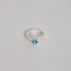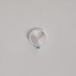 Descrição: Anel meia aliança com zircônia coração azul fabricado(a) em prata