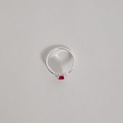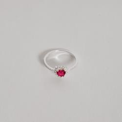 Descrição: Anel meia aliança com zircônia coração rubi fabricado(a) em prata