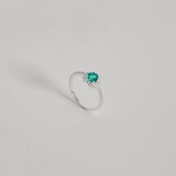 Descrição: Anel meia aliança com zircônia coração turmalina fabricado(a) em prata