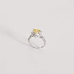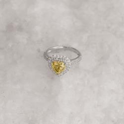Anel moissanite coração Yellow Fancy 7mm com cravejado ródio
