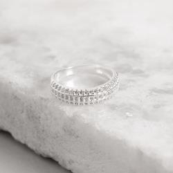 Anel meia aliança larga triplo cravejado | Mya Prata