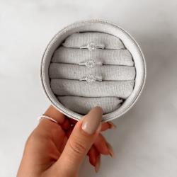 Descrição: Anel meia aliança com botão cravejado fabricado(a) em prata