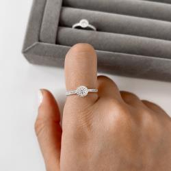 Anel meia aliança detalhe botão com zircônia | Mya Prata