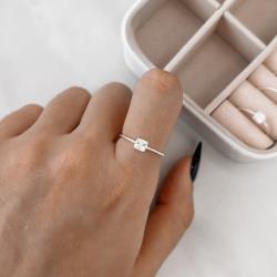 Descrição: Anel solitário zircônia quadrada fabricado(a) em prata