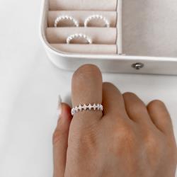 Anel losangos detalhe zircônias | Mya Prata