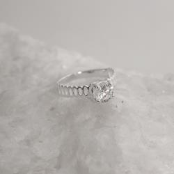 Descrição: Anel solitário zircônia cristal detalhe vazado fabricado(a) em prata