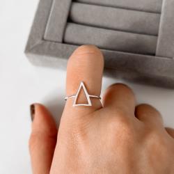 Descrição: Anel triângulo vazado 13mm fabricado(a) em prata