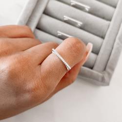 Descrição: Anel reto cravejado detalhe vazado fabricado(a) em prata