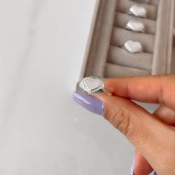 Anel coração grande borda cravejada | Mya Prata