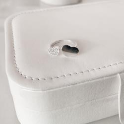 Descrição: Anel aberto coração liso e cravejado fabricado(a) em prata
