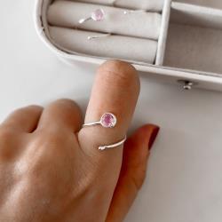 Anel bola e zircônia rosa 5mm regulável P | Mya Prata