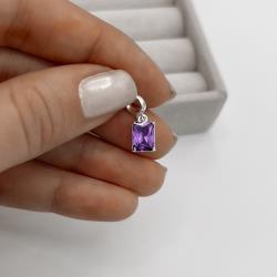 Descrição: Berloque pingente zircônia retangular ametista 8mm fabricado(a) em prata