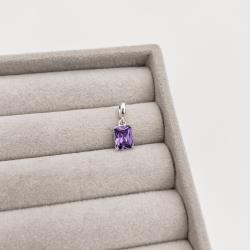 Berloque pingente zircônia retangular ametista 8mm | Mya Prata