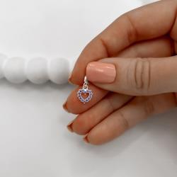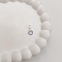 Berloque pingente coração vazado cravejado lilás 8mm | Mya Prata