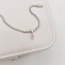Berloque pingente zircônia coração rosa 5mm | Mya Prata