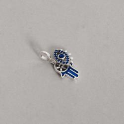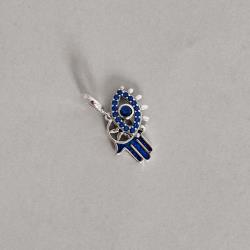Descrição: Berloque pingentes olho e mão cravejados resina fabricado(a) em prata