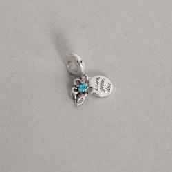 Berloque pingentes flor com zircônia azul e placa learn, grow, love envelhecido