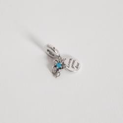 Descrição: Berloque pingentes flor com zircônia azul e placa learn, grow, love envelhecido fabricado(a) em prata