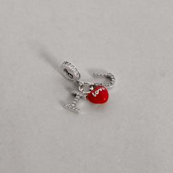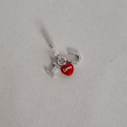 Descrição: Berloque pingentes I love U cravejados resina fabricado(a) em prata