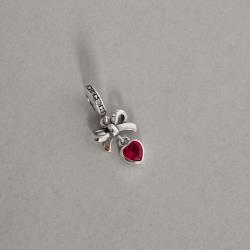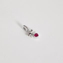 Descrição: Berloque pingente laço com zircônia coração pink 11mm elo cravejado envelhecido fabricado(a) em prata