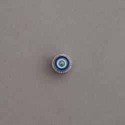 Descrição: Berloque separador olho com cravejado e resina 11mm fabricado(a) em prata
