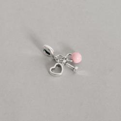 Descrição: Berloque pingentes kettlebell, halter e coração vazado fabricado(a) em prata
