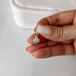 Descrição: Berloque pingente trevo 10mm resina fabricado(a) em prata