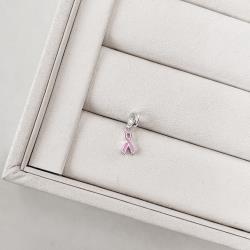 Berloque pingente laço outubro rosa 11mm resina | Mya Prata