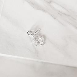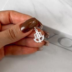 Descrição: Berloque pingente placa Nutrição com símbolo cravejado 15mm fabricado(a) em prata
