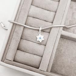 Berloque pingente floco de neve detalhe zircônia azul 11mm | Mya Prata