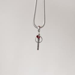 Descrição: Berloque pingente placa Odontologia com símbolo e zircônia cereja envelhecido fabricado(a) em prata